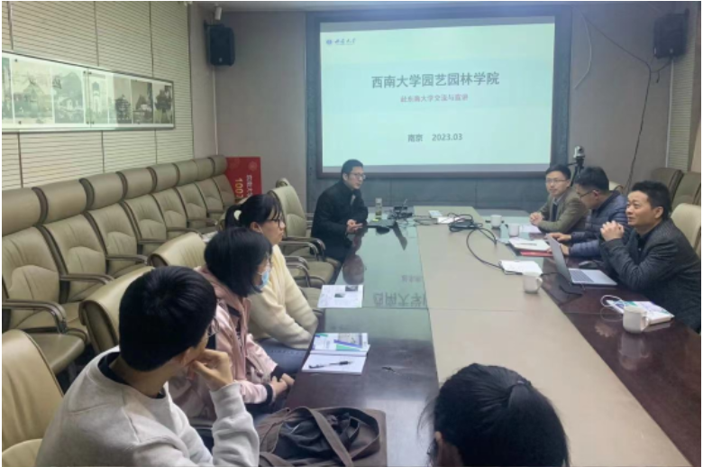 一行到访表示欢迎,她介绍了南京林业大学风景园林学科的发展历程,强调南京林业大学风景园林学院始终紧扣“固本、凝聚、开放”发展战略,不断突破取得成果。金钢介绍了学院党委坚持“国际视野、本土行动、现代思维”的办学理念,近年来协调推进党的建设、教学科研、社会服务所作的工作。潘玉锋对南京林业大学风景园林学院近些年取得的成就表示祝贺,从学科建设、师资队伍、人才培养等几个方面介绍了edddh