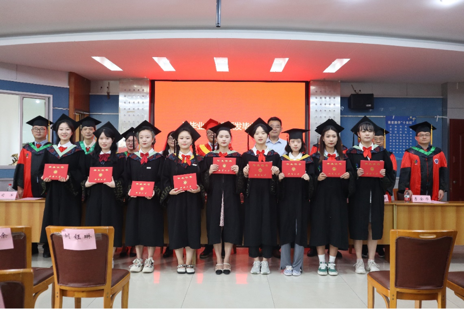 学位评定委员会关于2023春季学期学士学位授予的决定》。在青春激扬的音乐中,学院领导、学术委员会成员、教师代表为毕业生代表颁发毕业证书,为学位获得者授予学位。