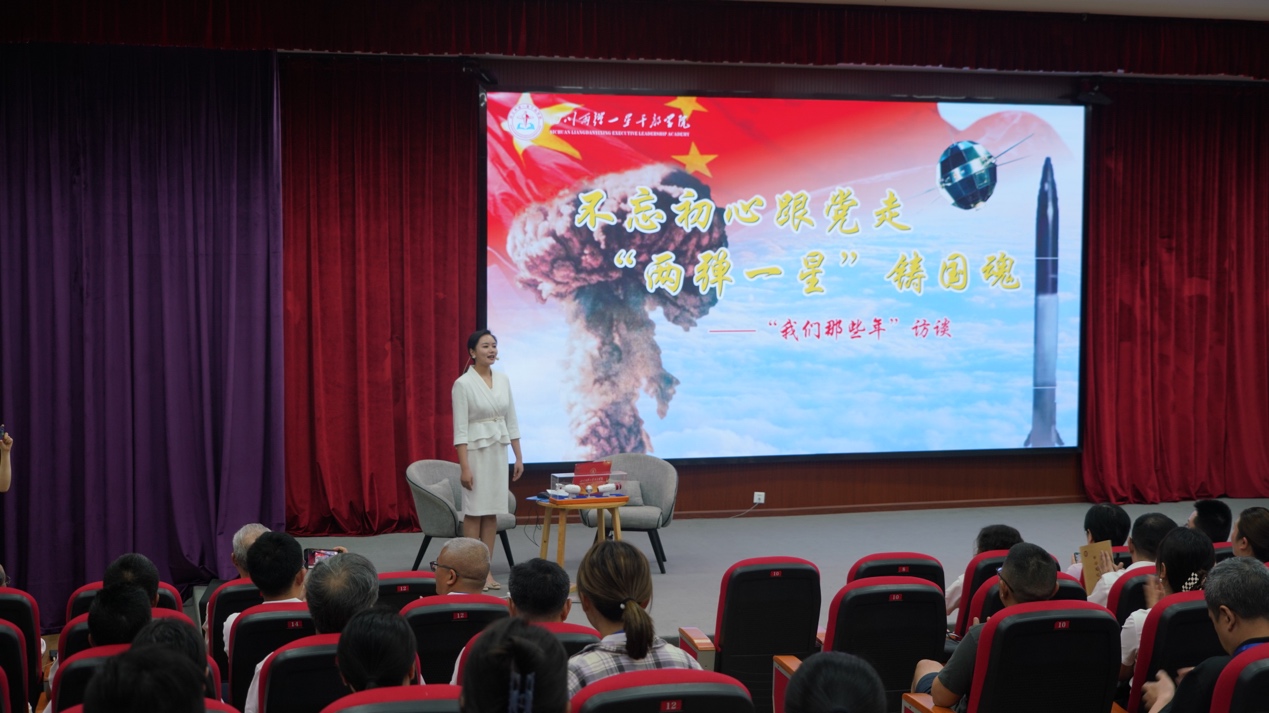 6日上午,现场教学环节,全体学员实地参观了两弹历程馆、邓稼先旧居、廉政教育家风馆、三防教育馆等展馆。期间,学员们瞻仰了“两弹一星”功勋邓稼先旧居,向邓稼先铜像敬献花篮,深切缅怀老一辈科学家,重温入党誓词。随后,现场学习了关于王淦昌、邓稼先、彭桓武、钱学森、王大珩家风的《忠厚传家久 诗书继世长》主题微党课。下午,学员们聆听了中物院原副院长尚林盛、两弹结合试验亲历者赵符修的《不忘初心跟党走 “两弹一星”铸国魂——“我们那些年”》现场访谈教学,观看情景教学《记忆里的“两弹一星”》,培训班成员了解了我国核武器发展的峥嵘岁月和艰苦奋斗历程,深切感受“热爱祖国、无私奉献、自力更生、艰苦奋斗、大力协同、勇于登攀”的“两弹一星”精神,深刻感悟到老一辈科技工作者“干惊天动地事,做隐姓埋名人”的家国情怀,在追寻功勋足迹中,坚定理想信念,砥砺奋斗之志。