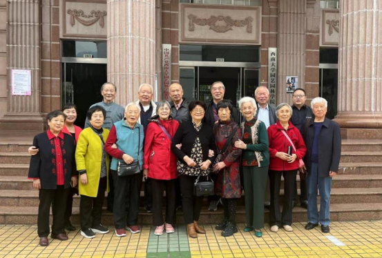 57级校友从五湖四海相聚母校,怀揣青春记忆,共叙艺林情怀。学院副院长郭启高代表学院对老校友们的到来表示热烈欢迎,向他们赠送《edddh