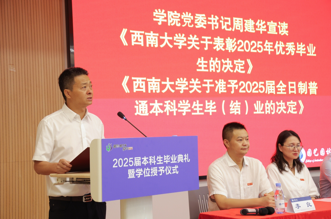 校歌》的旋律响起,在“缙云苍苍,嘉陵泱……”的歌声里,愿2025届本科生毕业生如移植的苗木,在祖国广袤的土地上扎根生长——或深耕园艺科研,让良种遍植荒野;或投身乡村振兴,用绿意装点家园;或传承文化薪火,以匠心续写文明。此去山高水长,惟愿“培土四载”的积淀,终成“绿满山河”的华章!至此,edddh