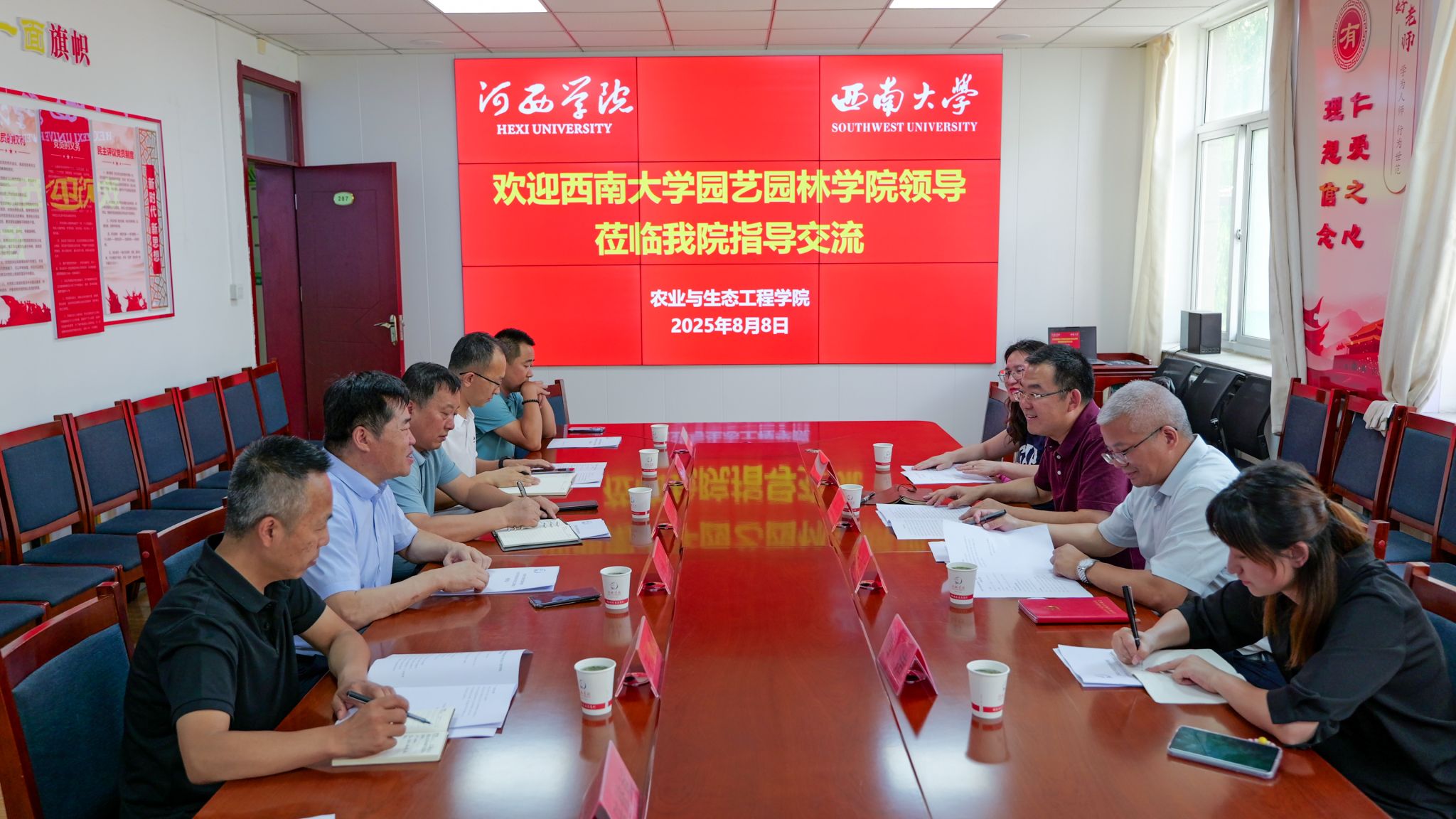 在河西学院,参观了美术学院敦煌文化传承创新中心、学校智慧就业中心、甘肃省应用真菌工程实验室和农业与生态工程学院校内实训基地等。座谈会上,双方围绕人才培养、高层次人才引进、教学科研团队建设、学科专业发展等方面开展交流与探讨。双方表示,将珍惜教育部师范教育协同提质计划政策机遇,进一步拓展园艺学科教学、科研领域的深度合作,积极推进学科专业转型升级,探索创新人才培养新模式,实现优势互补、协同发展。