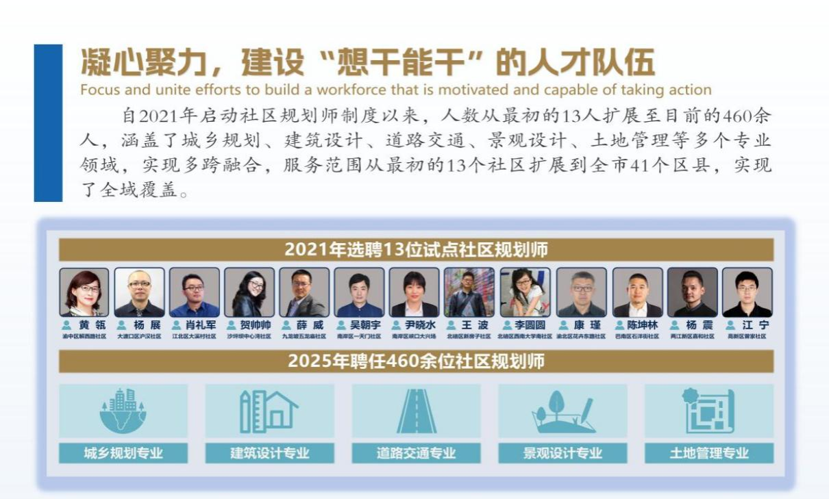 特别值得关注的是,学院李圆圆、王波两位教师作为重庆市首批社区规划师,长期深耕社区规划与微更新领域,以专业实践推动城市空间品质提升。其中,李圆圆凭借扎实的业务能力与突出的服务成效,连续获评重庆市优秀社区规划师及三星级“三师”称号。这一荣誉不仅是对个人专业水平的高度认可,更彰显学院教师团队主动服务地方发展需求、积极参与城市治理建设的专业素养与责任担当。