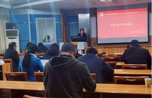 宋洪元院长讲话,他指出学院的学科建设、人才培养、党建与事业融合发展亟待大家深入思考,期望与会党员们充分发挥好先锋模范作用,共谋学院新发展。李雪梅书记总结讲话,充分肯定了各党支部和支部书记2021年的工作成绩,并提出了三点期望:一是加强自身建设,进一步提升履职水平;二是做好顶层设计,扎实推进支部工作;三是聚焦中心工作,促进党建与事业融合发展。