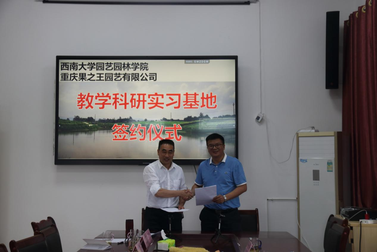 在区科技局、农委等领导的见证下,学院与果之王园艺有限公司签署了教学科研实习协议,实习基地挂牌活动圆满结束。