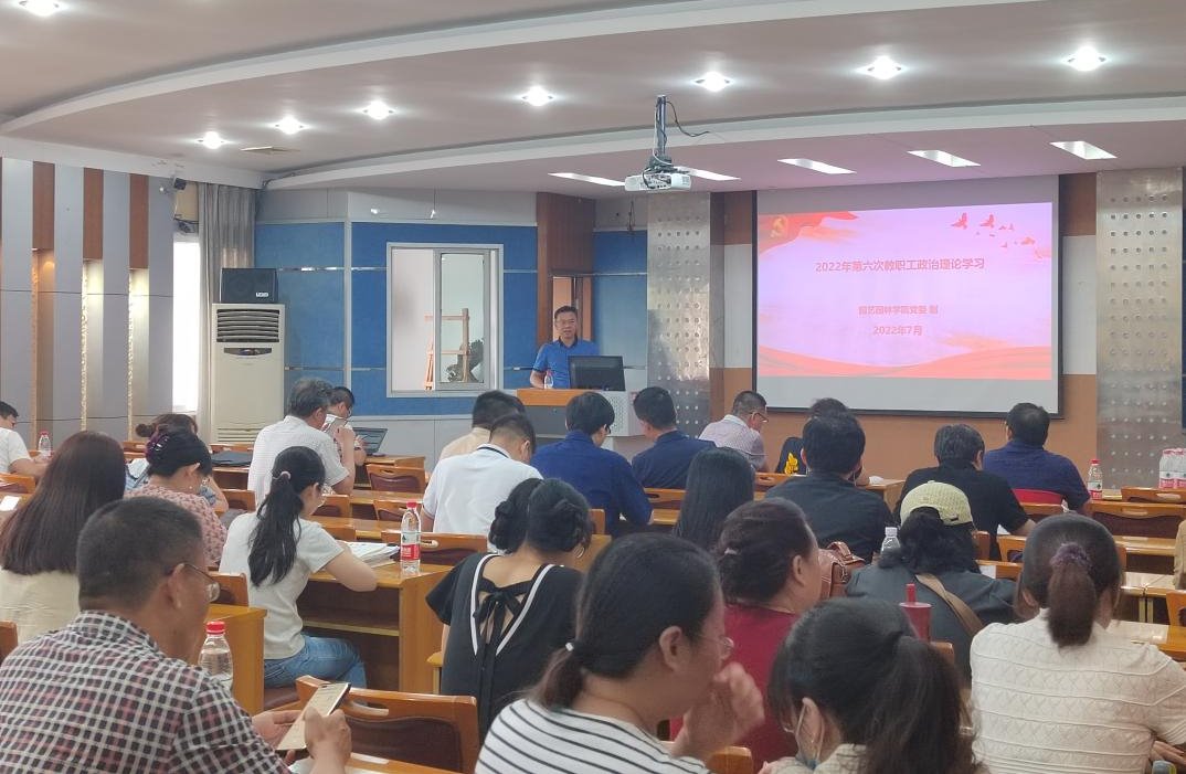 2022年第六次全体教职工政治理论学习会在33教406报告厅组织召开,会议由党委副书记李小红主持。