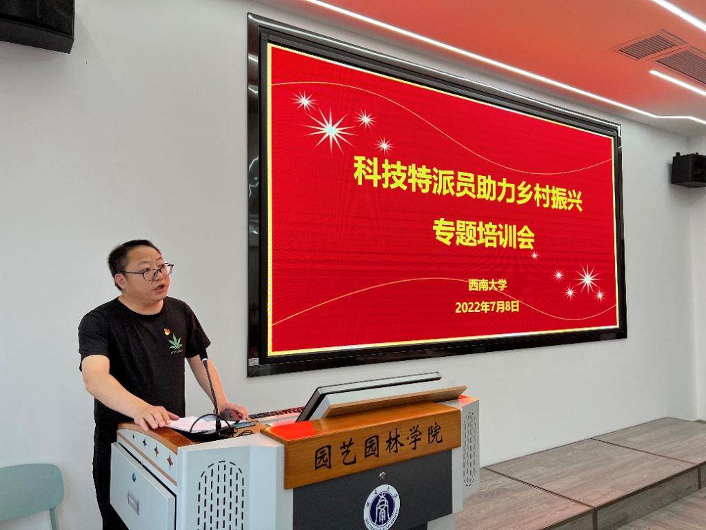 教工第二支部举办的特色党日活动“科技特派员助力乡村振兴专题培训会”在33教508会议室顺利举行。重庆市科技特派员协会秘书长范守城、edddh