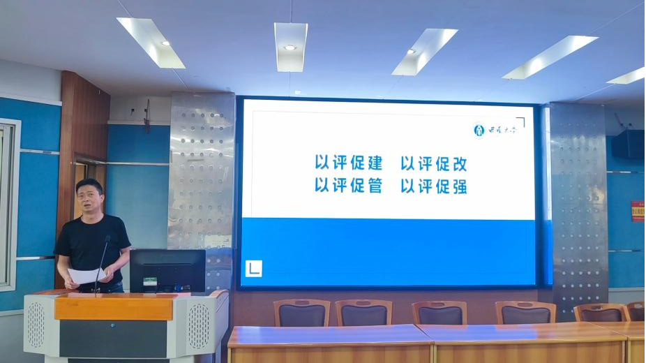 最后,副院长周建华通报了新一轮本科教育教学审核评估最新进展情况,再次强调方案要点和注意事项,指出学院领导班子高度重视此次教学评估,坚持全保真、原汁原味的工作思路,在“以评促建、以评促改、以评促管、以评促强”指导思想的引领下,坚持问题导向,发现问题,积极整改。对此,潘玉锋希望各位老师提高认识、注重言行,严格规范地开展教学工作,齐心协力,共同推进此次的评估工作。