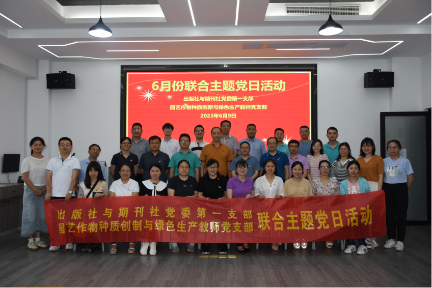 为推进学习贯彻习近平新时代中国特色社会主义思想主题教育走深走实,6月9日,园艺园林学院园艺作物种质创新与绿色生产教师党支部与学校出版社与期刊社党委第一支部在33教508会议室,联合开展“以学正风,强师德正师风”的主题党日活动。本次活动以“请进来,增了解,促交流,强合作”的模式,邀请edddh