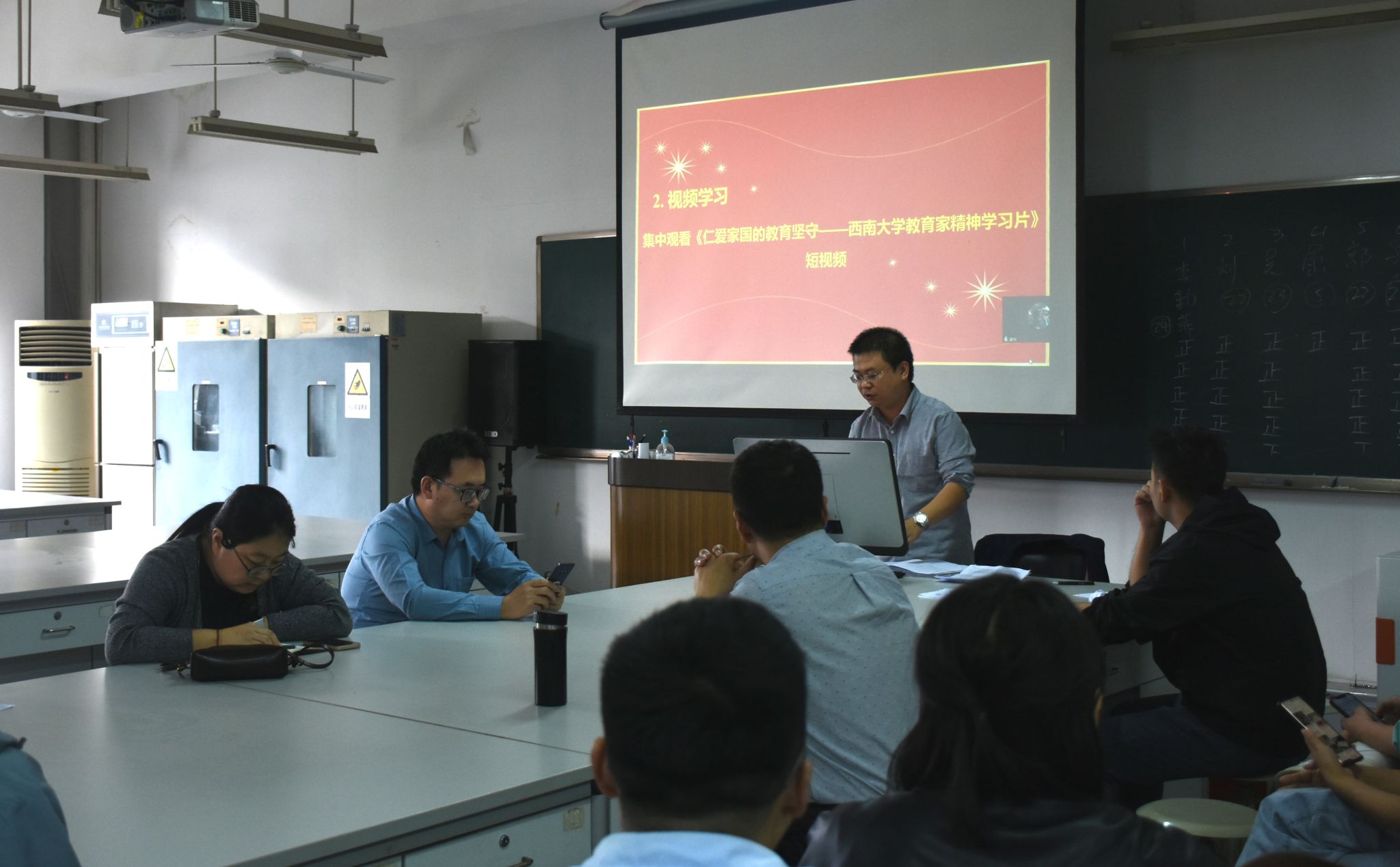 随后进行了视频学习环节,大家集中观看了《仁爱家国的教育坚守——edddh