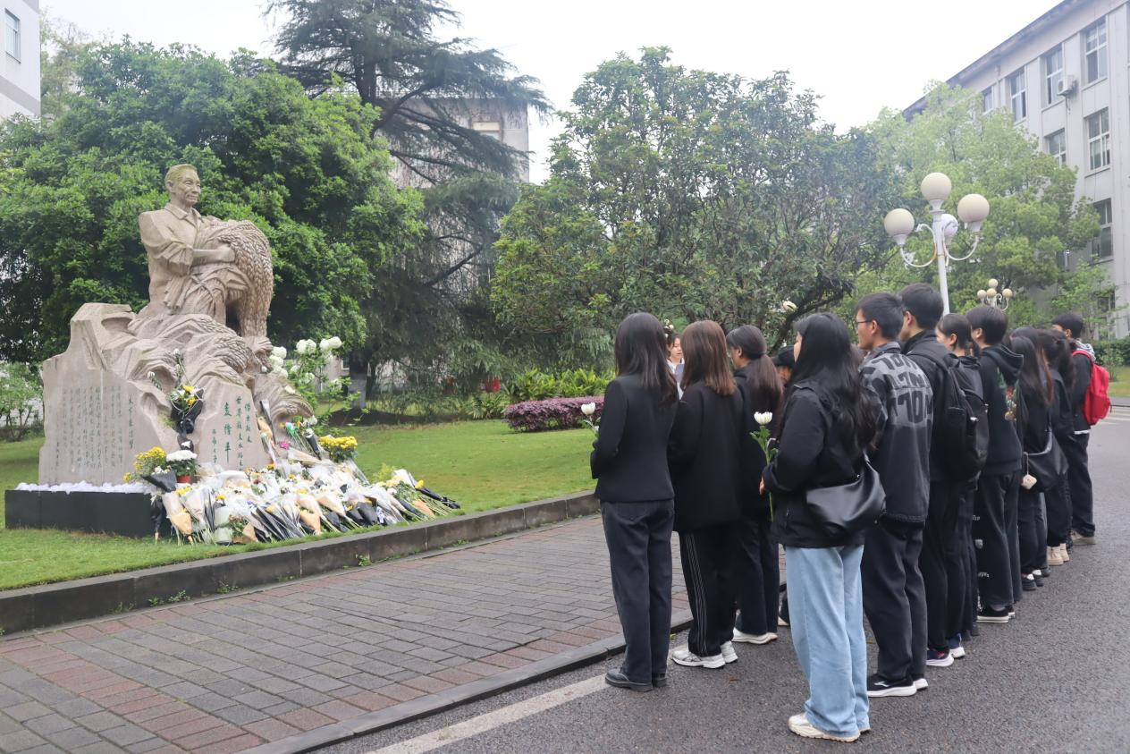 袁隆平雕像前,学习袁隆平院士的生平事迹。一稻济天下,袁隆平院士毕生致力于杂交水稻研究,他躬耕田野,脚踏实地把科研论文写在祖国大地上,为我国粮食安全、农业科学发展和全球粮食供应做出了巨大贡献,袁隆平院士为国、为民、为事业不畏艰难、敢于探索、用于付出的精神值得我们学习。千里稻香,不朽丰碑。今日神州,风吹稻菽千重浪,正是对追梦人的最好告慰。