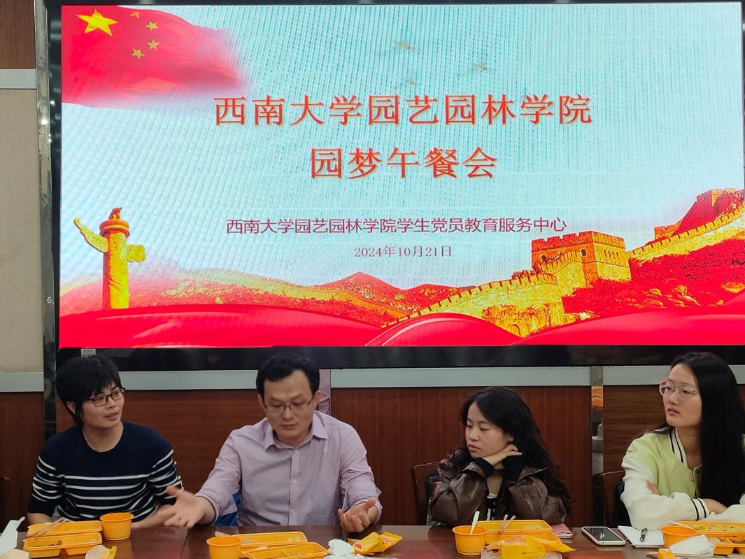 “园行领航”第七期教授午餐会于33教407室顺利举行。本期活动主题为“党旗引领科研路,园艺筑梦育新苗”。学院李金华教授、李勤菲副教授应邀出席,学院10余名同学参加活动。