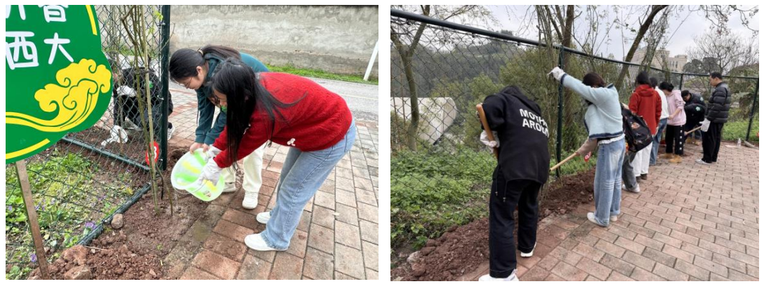 种下一份绿意,共建西大校园,此次植树实践活动不仅是一次身体力行的环保实践,更是党组织发挥引领作用,推动生态文明建设的生动体现。让我们携手同行,以“党建红”守护“生态绿”,为构建绿色、可持续发展的美好环境贡献青春力量。