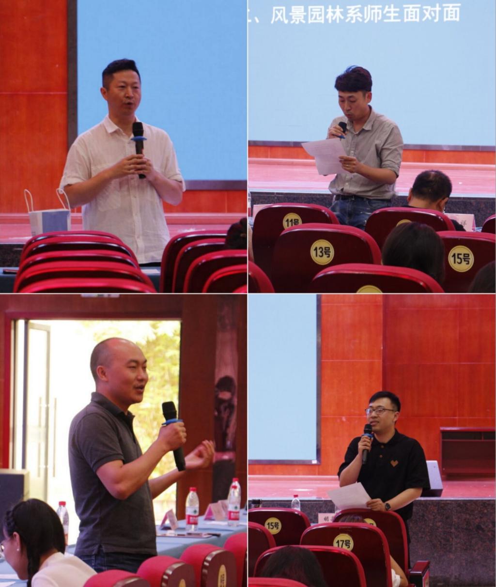 在师生面对面交流环节,风景园林系教师就同学们提出关于专业课程安排、设计能力学习、辅助工具应用、时间安排管理等方面的相关问题悉数耐心解答。代璐老师结合自身读本科的情况希望同学们多积累,做足“绣花功夫”;孙松林老师提出要多练习,绘本的厚度决定了知识的深度;于士祥老师希望同学们增强自信,不断自我约束、自我规划、自我引领;胡嘉诚老师对作业安排、暑假专业提升作了经验分享;已毕业的师姐刘欣悦、眭淼、张圆圆也分别从考研保研、专业学习、设计规划等方面分享了自己的心路历程。同学们从老师们和师姐们的解答和分享中收获颇丰。