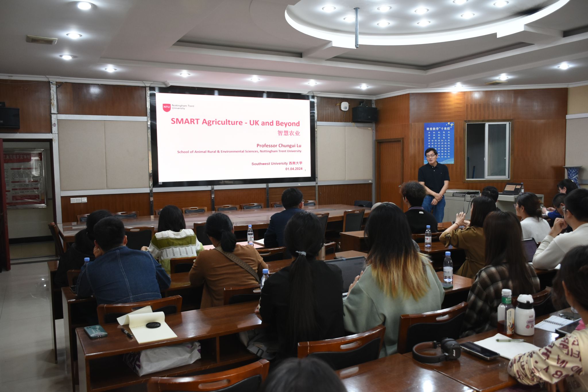 4月1日,英国诺丁汉特伦特大学智慧农业中心主任陆春贵教授应邀来学院进行学术交流,并作了题为“SMART Agriculture-UK and Beyond”的学术报告。学院党委书记潘玉锋和部分师生参加报告会,报告会由园艺系主任潘宇教授主持。